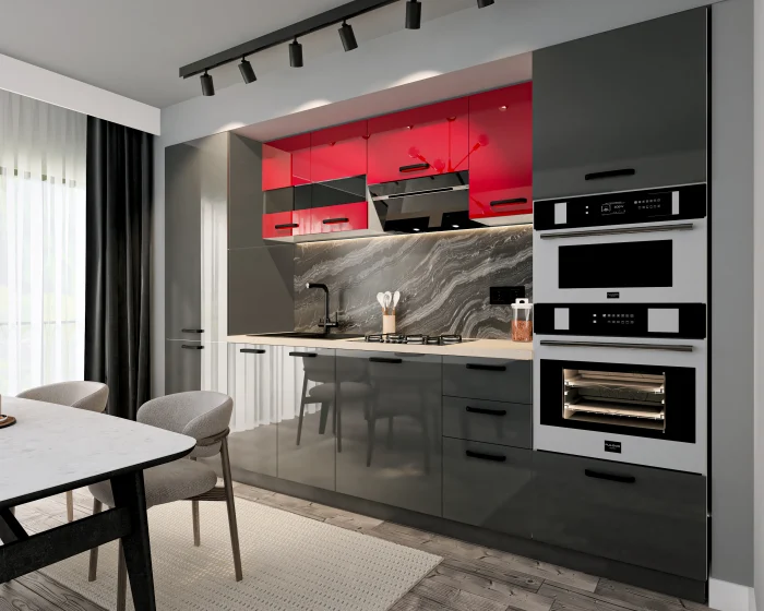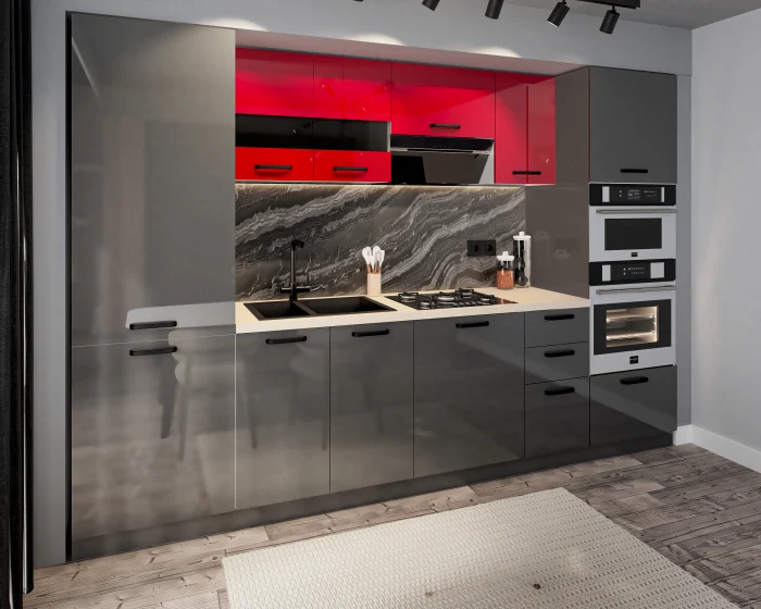 Bucatarie Daria MDF Rosu/Antracit 303x60x200 cm
