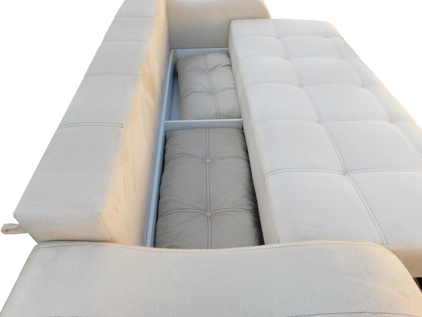 Canapeaua Laura este realizata din stofa de calitate ,se extinde prin ridicarea sezutului si aducerea acestuia spre inainte apoi rabatarea spatarului.Aceasta prezinta o lada de depozitare ideala pentru lenjerie sau perne.