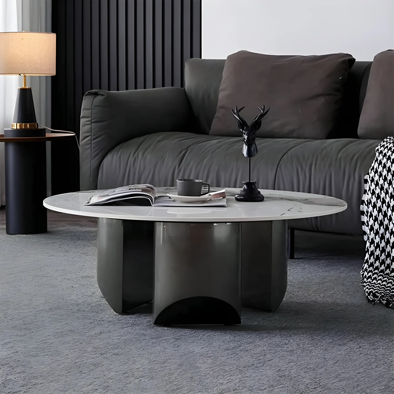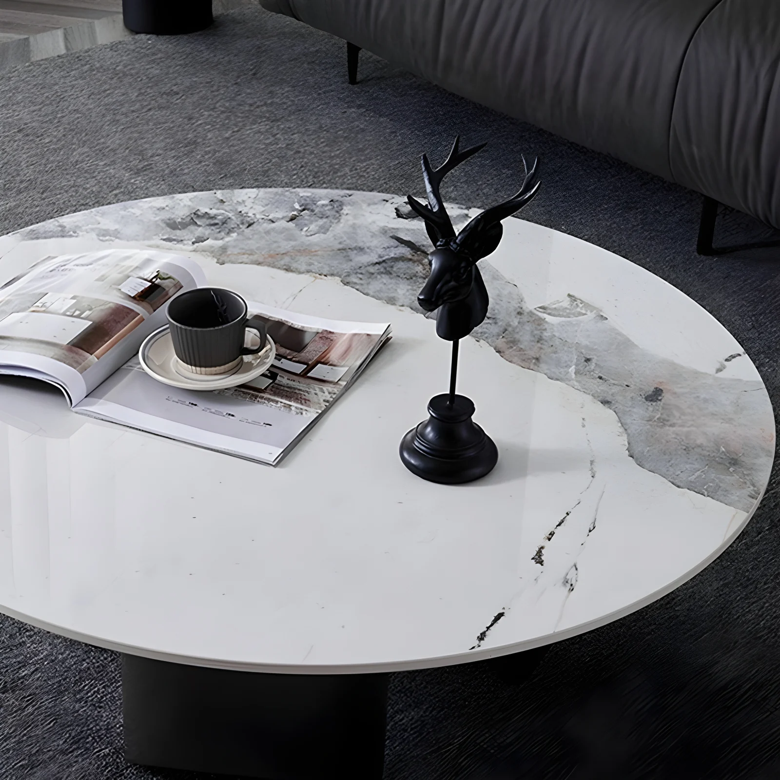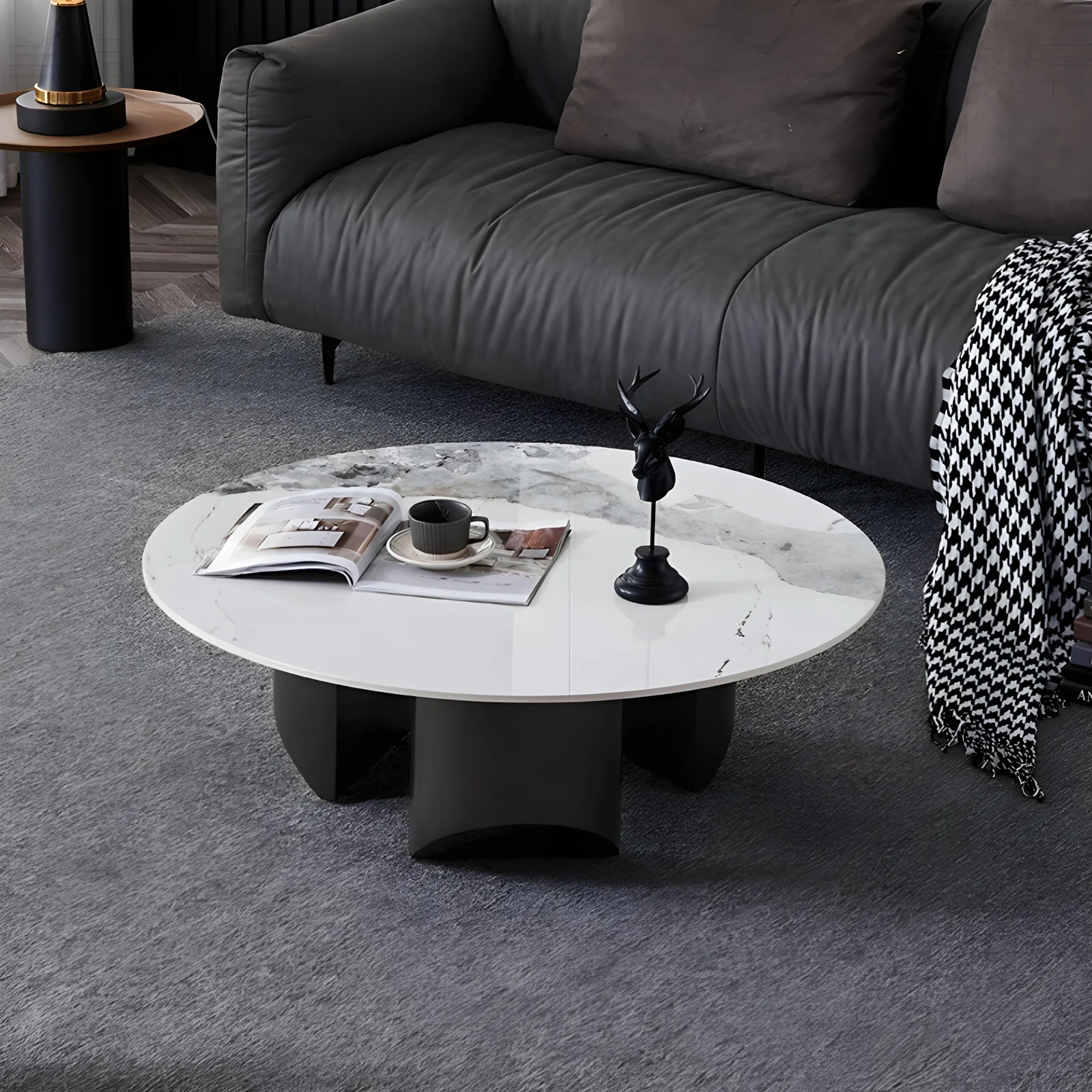 Blat rotund din imitație marmură neagră, cu finisaj elegant