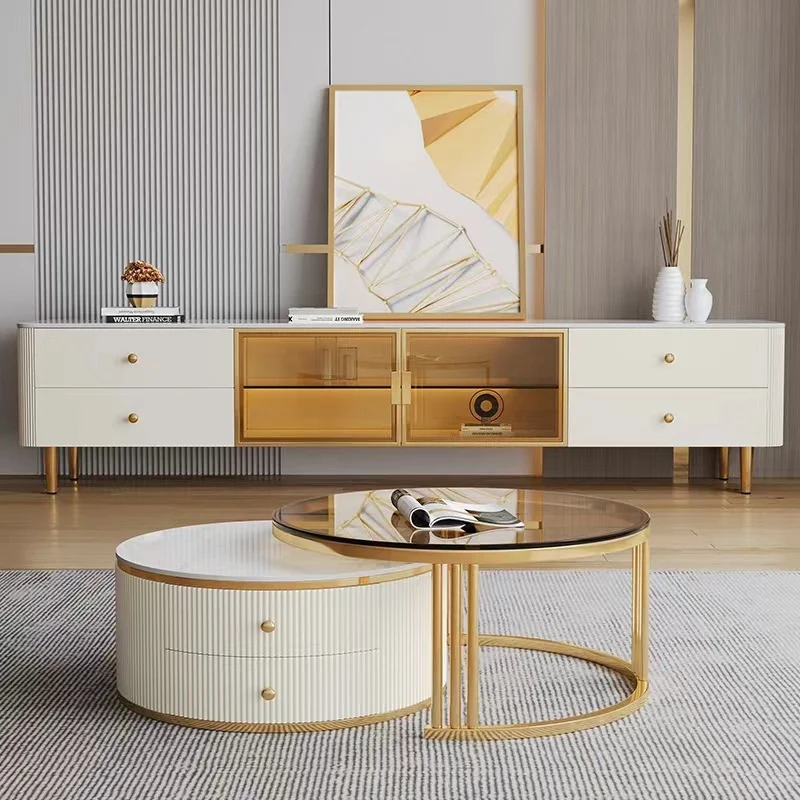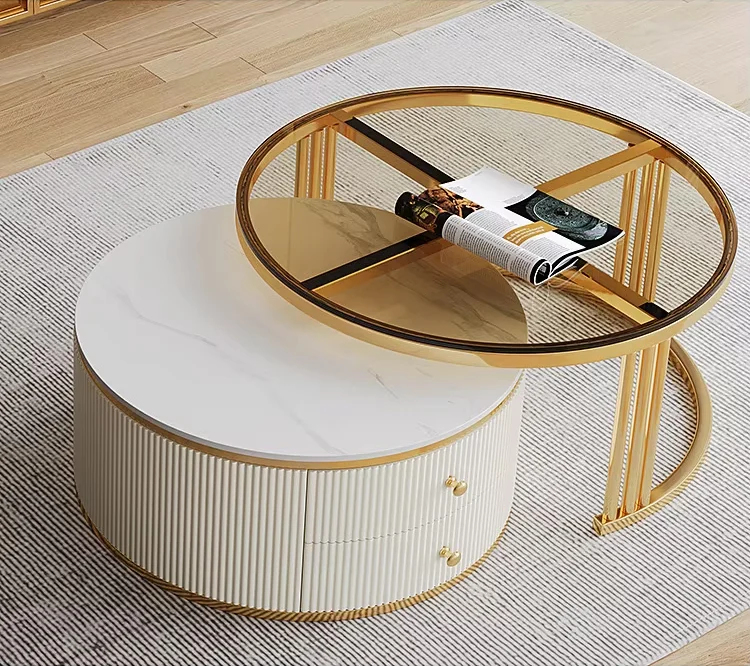 🔸 Măsuța mare are o structură solidă din MDF și un blat din piatră sinterizată, rezistent la zgârieturi, căldură și uzură zilnică. Este echipată cu două sertare spațioase, ideale pentru depozitarea telecomenzilor, revistelor sau altor obiecte mici, menținând ordinea în sufrageria ta.