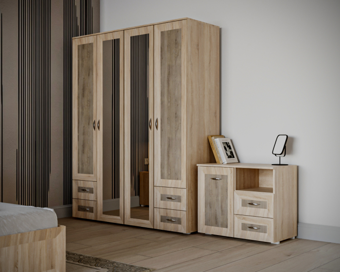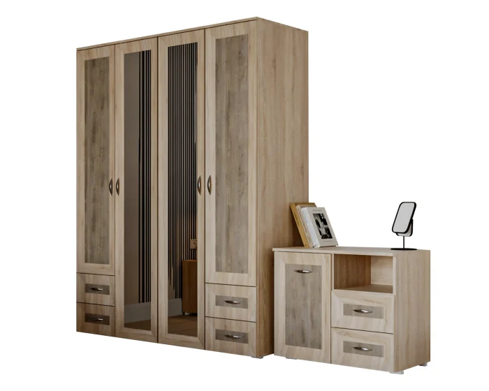 - Dulap 4 Usi cu rafturi si bara haine ( x 1 buc ): Lungime 160 x Adancime 53 x Inaltime 204cm;