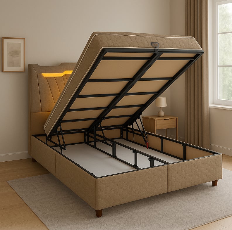 Pat Boxspring Charlotte 160x200 cu saltea inclusa si topper, cu ladă de depozitare, Bej